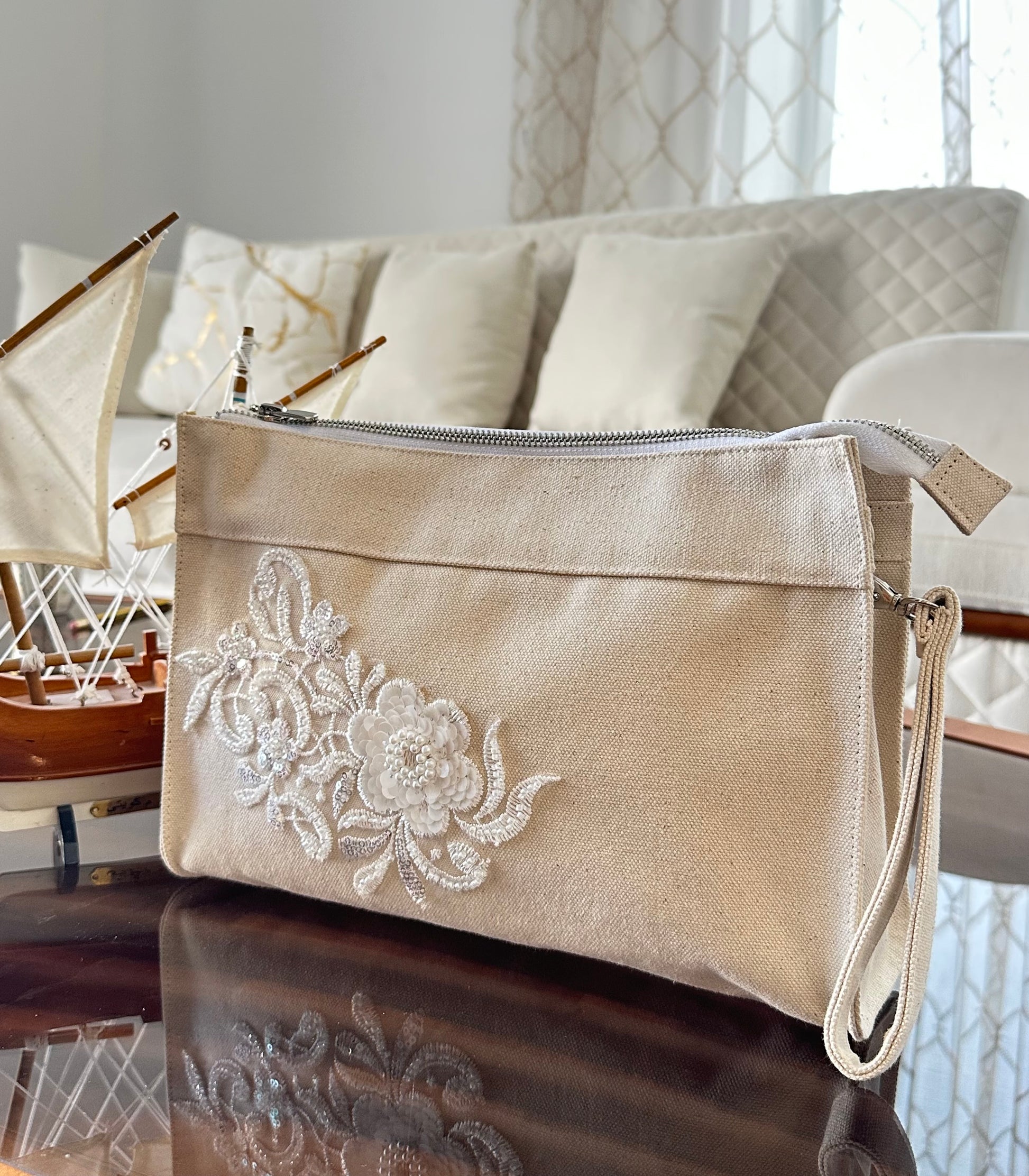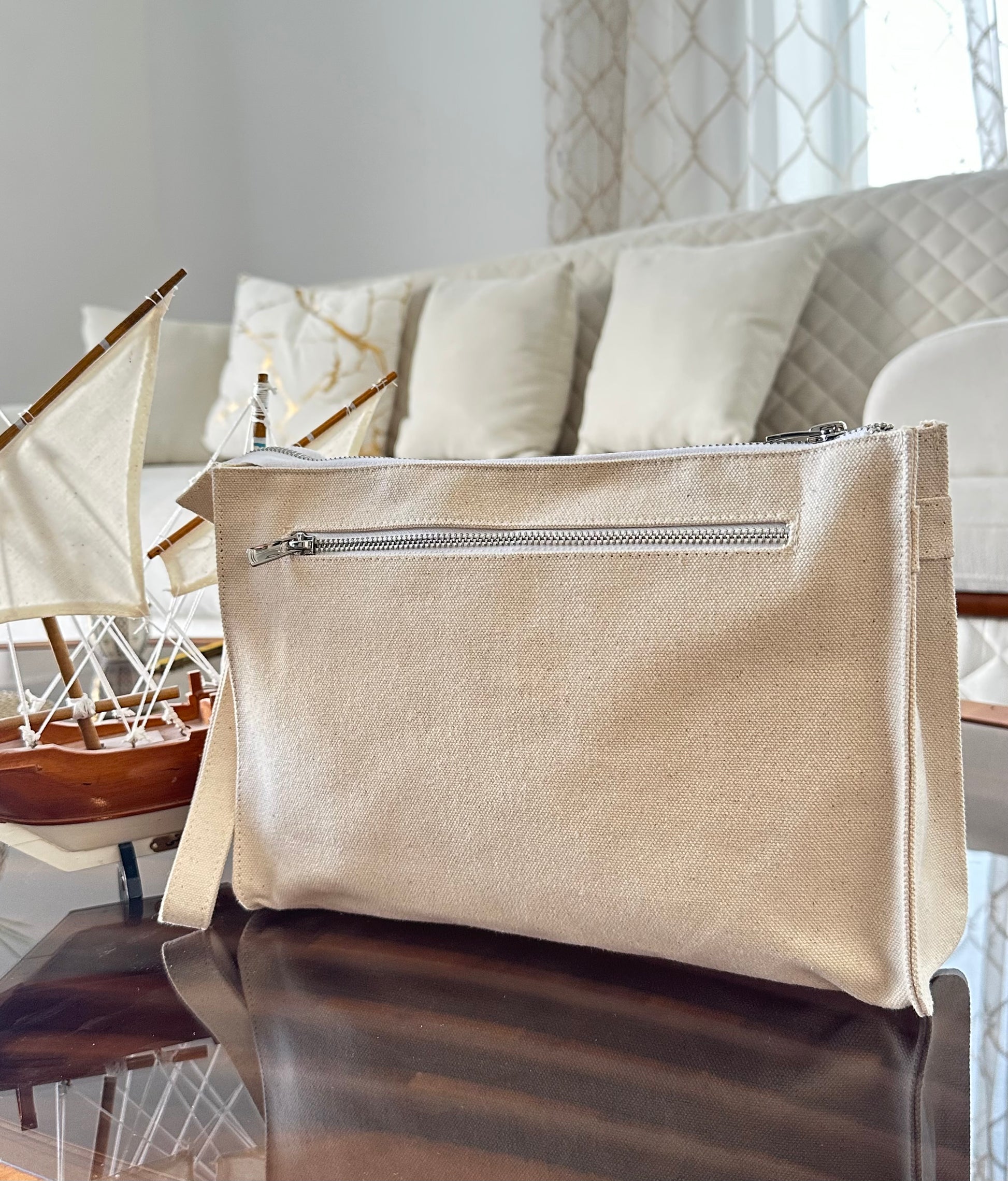 تحتوي على جيب داخلي وخارجي مع سحاب